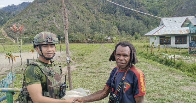 INTAN JAYA - Satgas Pamtas RI–PNG Mobile Yonif 113/Jaya Sakti kembali menunjukkan kepedulian sosial dengan menyalurkan bantuan bahan pokok berupa beras kepada masyarakat Kampung Bilai, Distrik Homeyo, Kabupaten Intan Jaya, Papua Tengah, Kamis (23/4/2026).